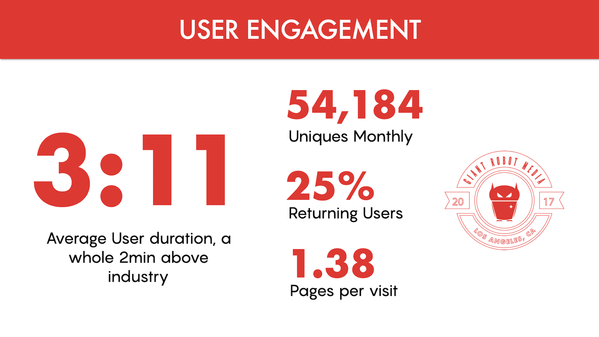 With any web-based publication, having solid numbers matter. Audience, unique views, average user duration… these numbers tell the story of how compelling the platform was. Below are the results of all the efforts of building this magazine.